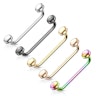Deze piercings zijn mogelijk met het sieraad waar je nu naar kijkt. Je kijkt namelijk naar een 90° surface bar van chirurgisch staal. Deze surface bar is versierd met platte schijfjes aan beide uiteinden. Het sieraad is verkrijgbaar in verschillende kleuren - je kunt bijvoorbeeld voor een multikleur sieraad kiezen, maar ook voor een goudkleurig sieraad. Het is helemaal aan jou om te kiezen naar jouw eigen behoeften en voorkeur!