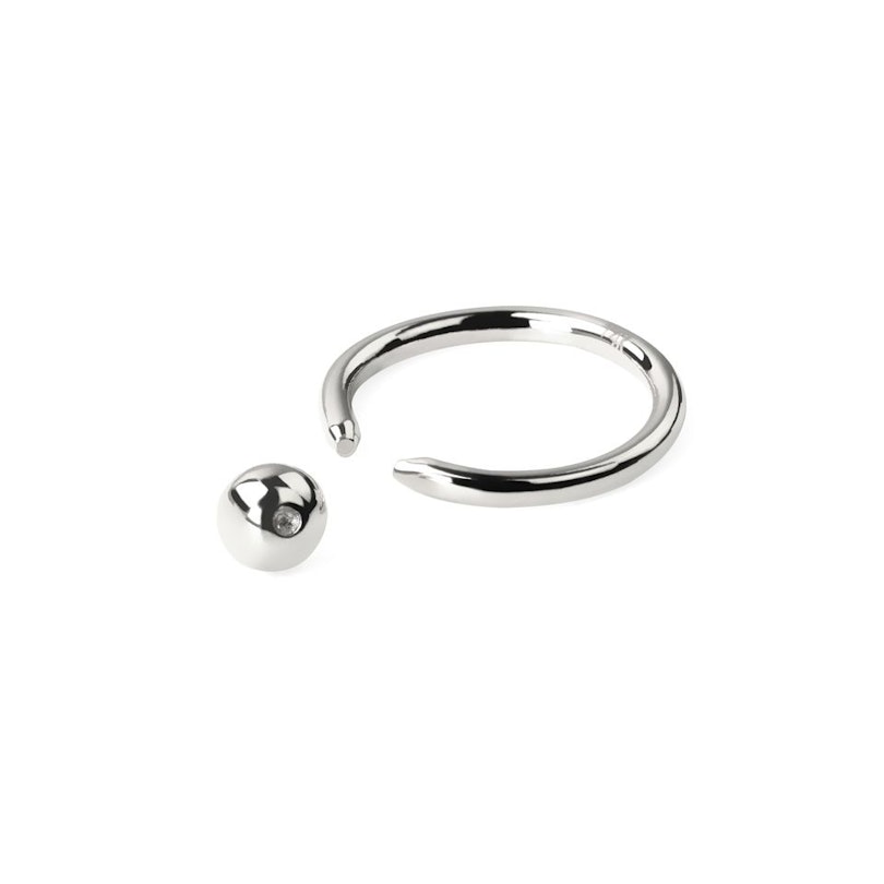 Mooie en eenvoudig bewerkte ballclosure ring in klassiek design uit 14 karaats goud, in plaats van de typisch gebruikte materialen voor ballclosure ringen. Ballclosure ringen zijn erg geliefd als piercingssieraden, omdat ze eenvoudig in hun design zijn en geen schroefdraad of afschroefbare delen hebben, waar vuil en bacteriƫn in terecht kunnen komen. De balletjes zitten simpelweg vast tussen de twee uiteinden van de ring zelf en worden op hun plek geklikt. Door de lichte inkepingen aan de zijkanten van de bal, wordt deze op z'n plek gehouden.