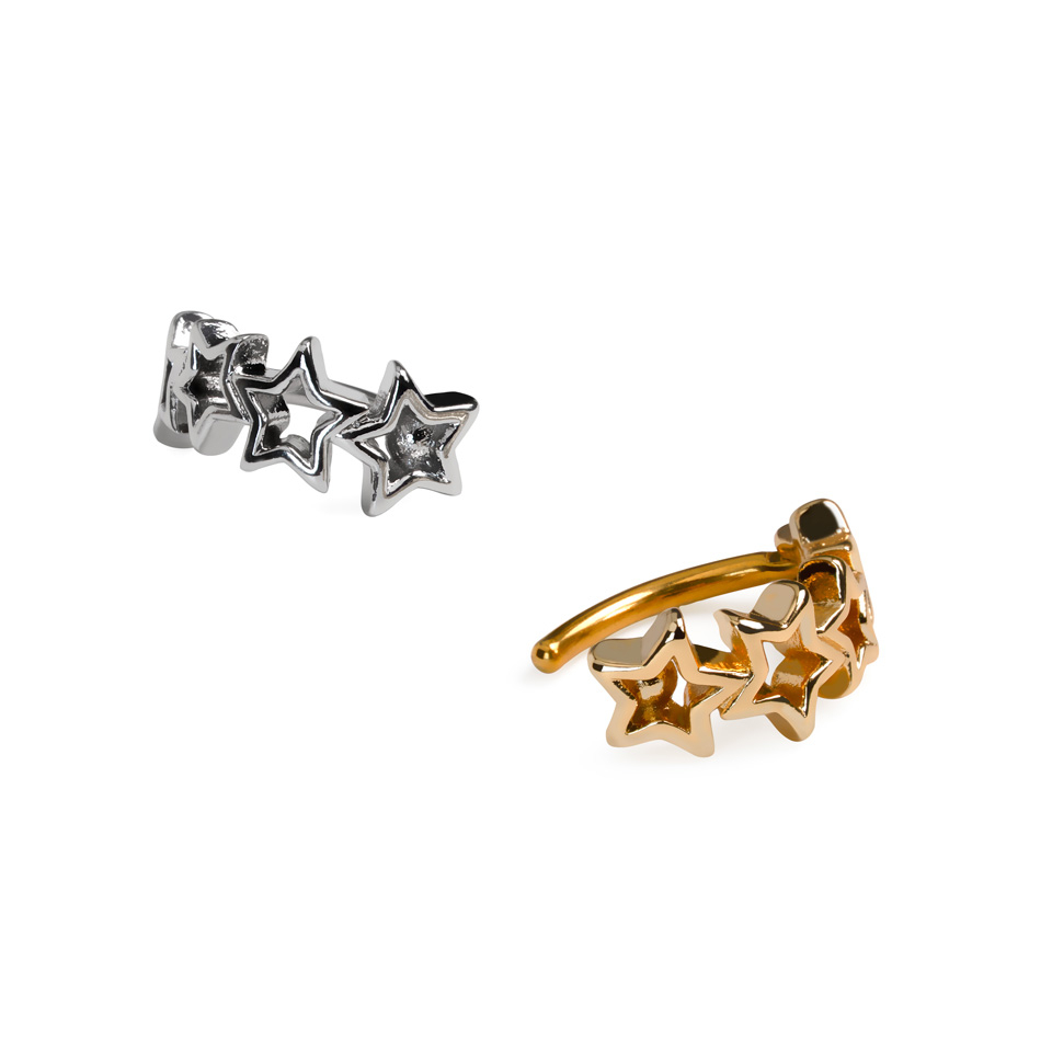 Deze navel clicker met scharnier en sterren zal een goede toevoeging maken aan je collectie navelsieraden. Het scharnierontwerp maakt het heel makkelijk om het sieraad in te doen en in je piercing te bevestigen.