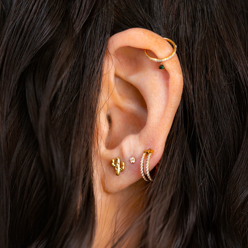 Beschikbaar in goud of zilver, kan het makkelijk in je conch, helix, oorlel of tragus. Elke dag dragen? Geregeld. Piercing glow-up? Dubbel geregeld.