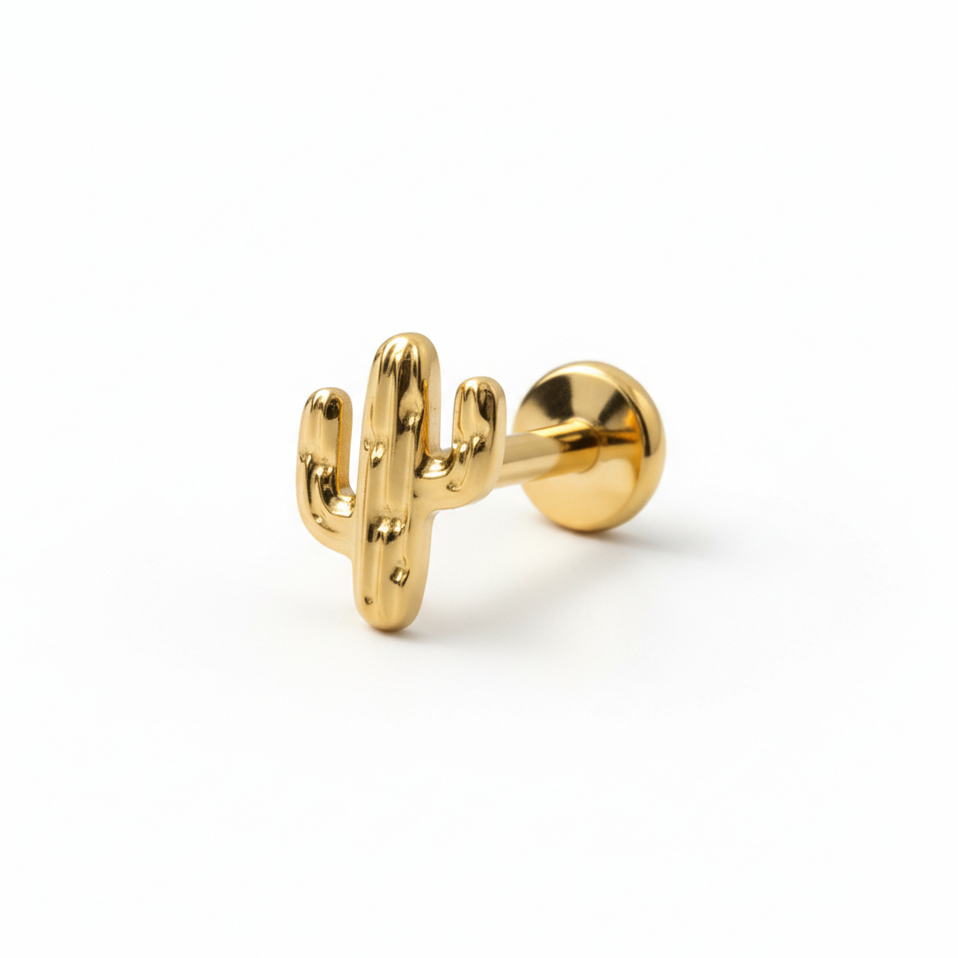 Niet je gemiddelde stud. Deze cactus labret van titanium van Bodymod Trend brengt de woestijn vibes naar je piercings. Schattig, prikkelbaar, en veel cooler dan een saaie flatback.