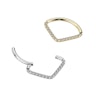 Ga jij altijd voor de glitter en de glamour? Stop met scrollen! Deze tijdloze ring heeft een chevron design dat is bezaaid met sierlijke steentjes (het stukje dat in je piercing gaat is uiteraard glad voor ultiem comfort). Dit sieraad heeft de perfecte hoeveelheid glamour en is een gegarandeerde blikvanger. Het scharniertje opent en sluit super makkelijk, dus je kan 'm zo indoen als je klaar bent om te shinen.