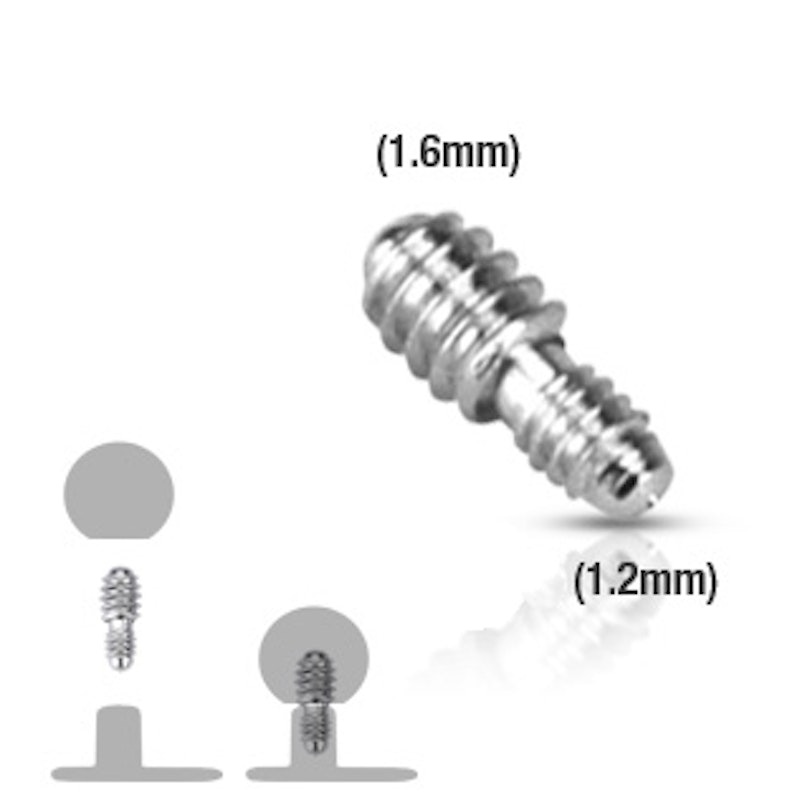 De staaf heeft aan het ene uiteinde een schroefdraad van 1,2 mm, wat de standaardmaat is voor dermals. Op de andere kant zit een schroefdraad van 1,6 mm, welke dezelfde maat is als vele balletjes hebben. Nu kun je dus ook balletjes met een innerlijke schroefdraad van 1,6 mm voor je dermals gebruiken.