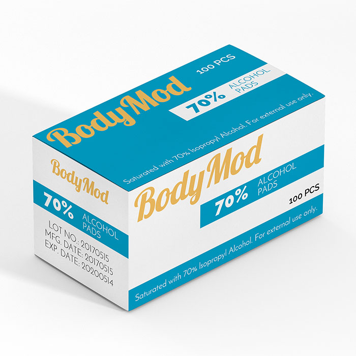 Deze doekjes bevatten 70% isopropyl alcohol en 30% water, en kunnen alleen gebruikt worden op piercings tijdens het genezingsproces.