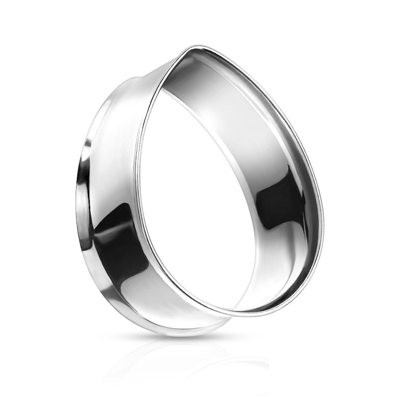 Deze tunnel bestaat uit chirurgisch staal. De dikte van het metaal is ongelooflijk dun, zodat het sieraad er groter uitziet dan het eigenlijk is. De dikte bedraagt ongeveer 0,5 mm. Het sieraad komt in een druppel- of peervorm. Je zou bijna kunnen zeggen dat het er wat mollig uitziet.
