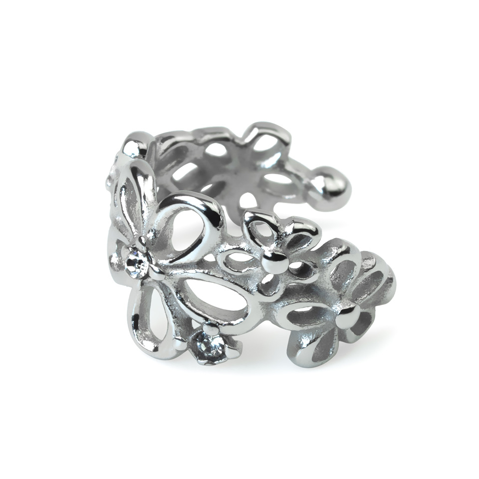 Earcuff met bloemen van chirurgisch staal
