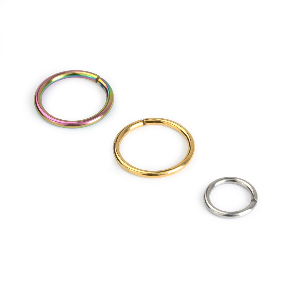 Met deze naadloze ring wordt het een stuk makkelijker om het sieraad te gebruiken. De ring bestaat uit ƩƩn stuk metaal met een hele kleine opening. Je draait de ring simpelweg in tegengestelde richting - je trekt de uiteinden niet van elkaar af. Schuif het sieraad in je piercing, en het ringetje zal sluiten wanneer je 'm loslaat. Let op: de uiteinden van de kleinere modellen kunnen scherp zijn wanneer ze open zijn.