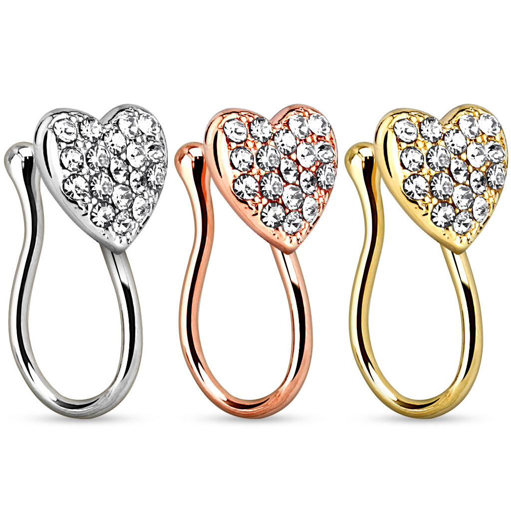 Deze fake neuspiercing rockt een prachtig hart met kleine steentjes. De steentjes schitteren als de zon wanneer het licht erop schijnt.
