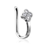 Als je een klavertje vier vindt, dan brengt dat geluk in je leven. Nu hoef je niet langer te zoeken, want je kunt het gewoon krijgen door deze fake neuspiercing te kopen. Ja, je hoeft niet eens een gaatje in je neus te hebben, je hebt alleen maar een neus nodig. Het sieraad bestaat in al zijn eenvoud uit een stuk messing in de vorm van een U. Het sieraad heeft een glanzend laagje gekregen voor een glanzend oppervlak. Op de voorkant, het deel dat dan aan de buitenkant van je neus komt te zitten, zit zoals gezegd, het klavertje vier. Ieder blaadje van het klavertje bestaat uit een transparant steentje. Het klavertje meet ongeveer 4,5 mm in diameter.