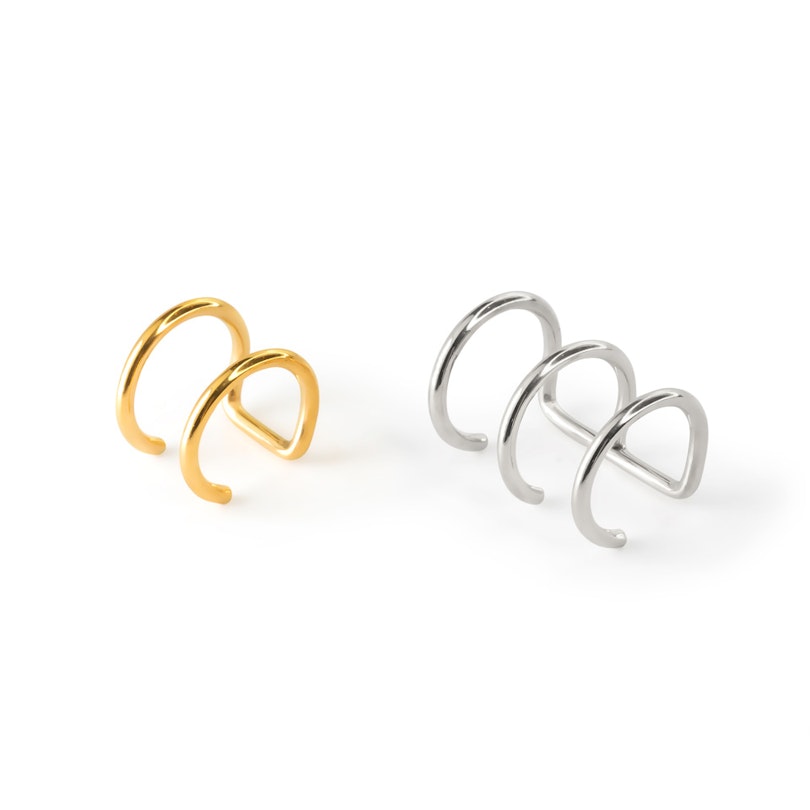 Deze coole fake oorpiercing bestaat uit chirurgisch staal en is met een mooi gekleurd laagje titanium bedekt. Hij is beschikbaar met twee of drie ringen en je klipt hem zo aan de bovenkant van je oorschelp vast.