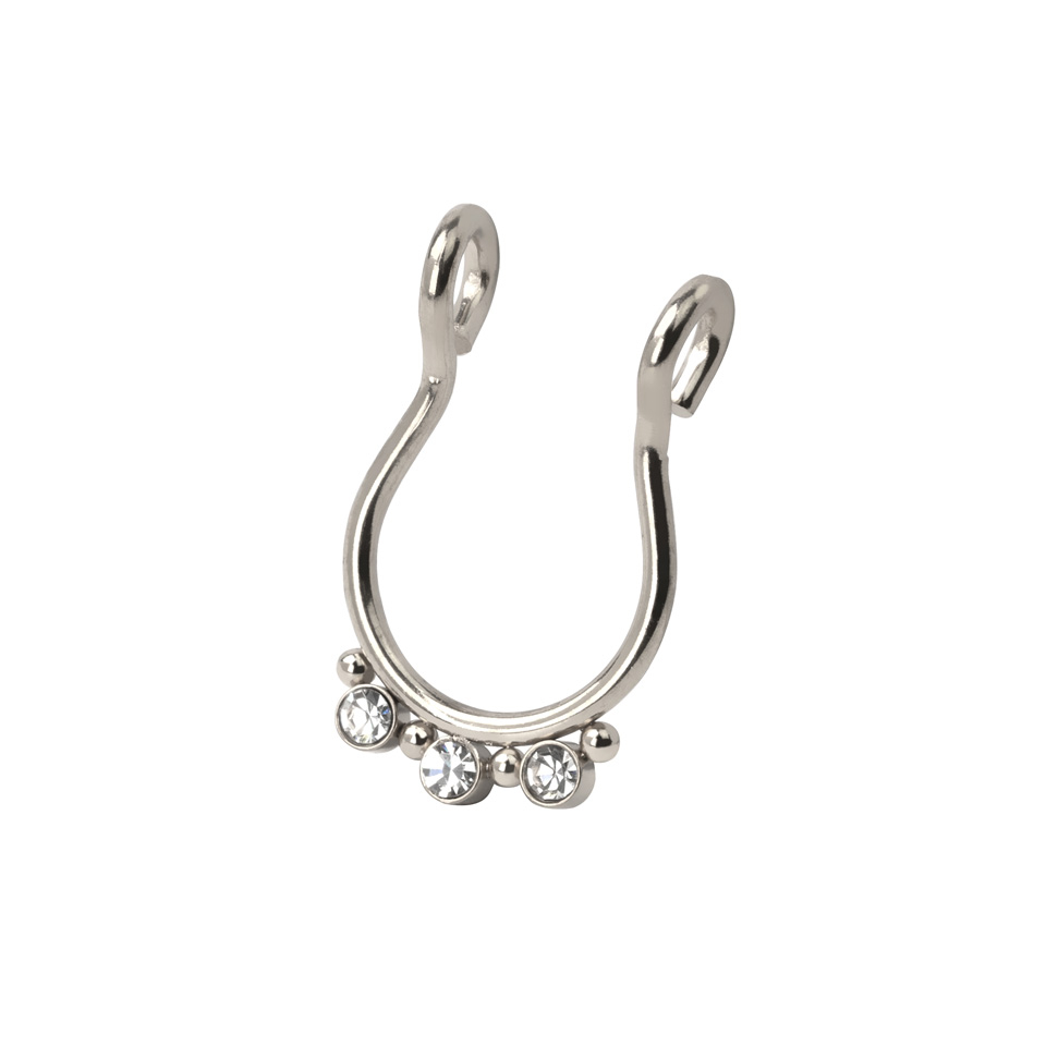 Naam: Fake septumring met drie steentjes en kleine kraaltjes