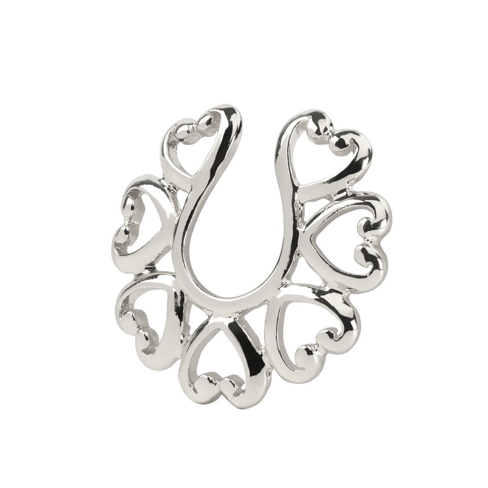 Vind je een tepelpiercing super vet maar heb je de stap nog niet durven zetten? Met deze fake tepelpiercing kan je ervaren hoe het is zonder naar de piercing te gaan. Het tepelschild is versierd met een rij hartjes die speels om je tepel zitten.