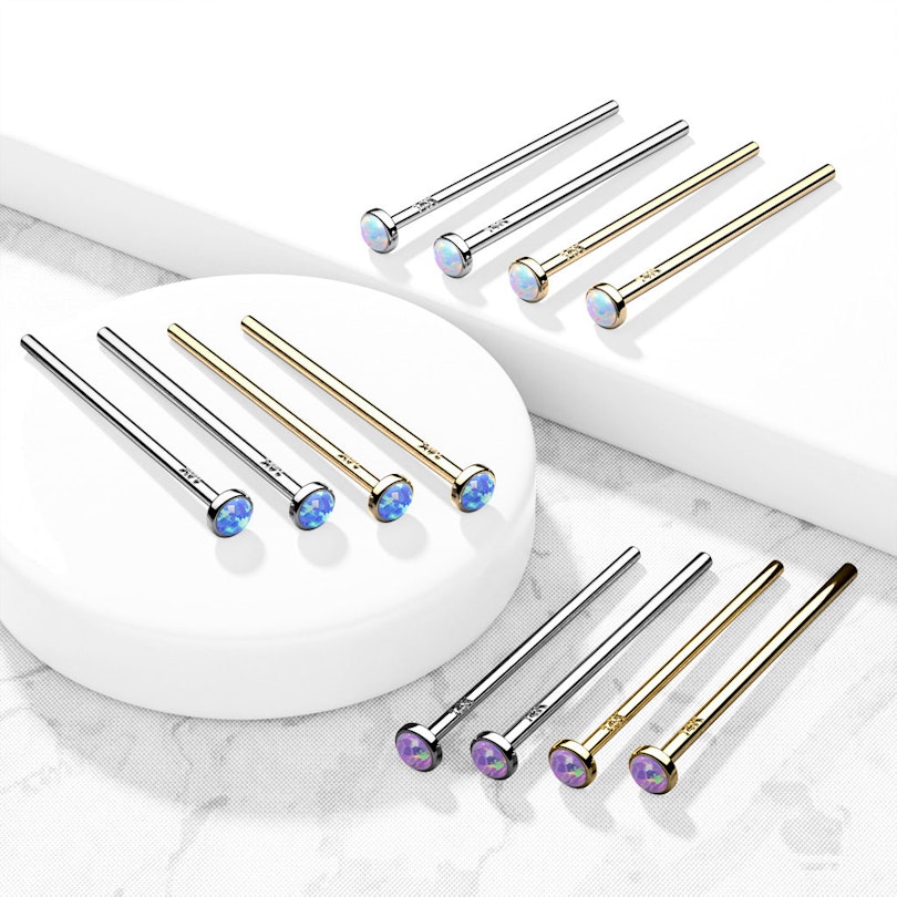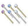 Fish Tail neuspiercing uit 14 karaats goud met ronde opaal