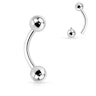 Een gebogen staaf is een beetje een all round sieraad, aangezien je het in veel verschillende piercings kunt gebruiken. Het enige dat noodzakelijk is om deze staaf te kunnen gebruiken, is dat de maten van de staaf overeenstemmen met de maten van de piercing die je hebt. Als je bijvoorbeeld een verticale labret hebt met een 10 mm lengte en 1,2 mm draaddikte, dan moet je natuurlijk een gebogen staaf met dezelfde maten bestellen. De grootte van de balletjes is vooral een kwestie van smaak, dus als je graag 3 mm grote balletjes wilt hebben dan bestel je dat, en als je liever 4 mm hebt dan doe je dat.