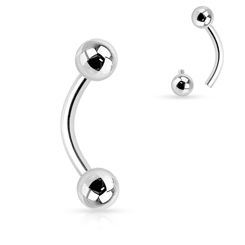 Een gebogen staaf is een beetje een all round sieraad, aangezien je het in veel verschillende piercings kunt gebruiken. Het enige dat noodzakelijk is om deze staaf te kunnen gebruiken, is dat de maten van de staaf overeenstemmen met de maten van de piercing die je hebt. Als je bijvoorbeeld een verticale labret hebt met een 10 mm lengte en 1,2 mm draaddikte, dan moet je natuurlijk een gebogen staaf met dezelfde maten bestellen. De grootte van de balletjes is vooral een kwestie van smaak, dus als je graag 3 mm grote balletjes wilt hebben dan bestel je dat, en als je liever 4 mm hebt dan doe je dat.