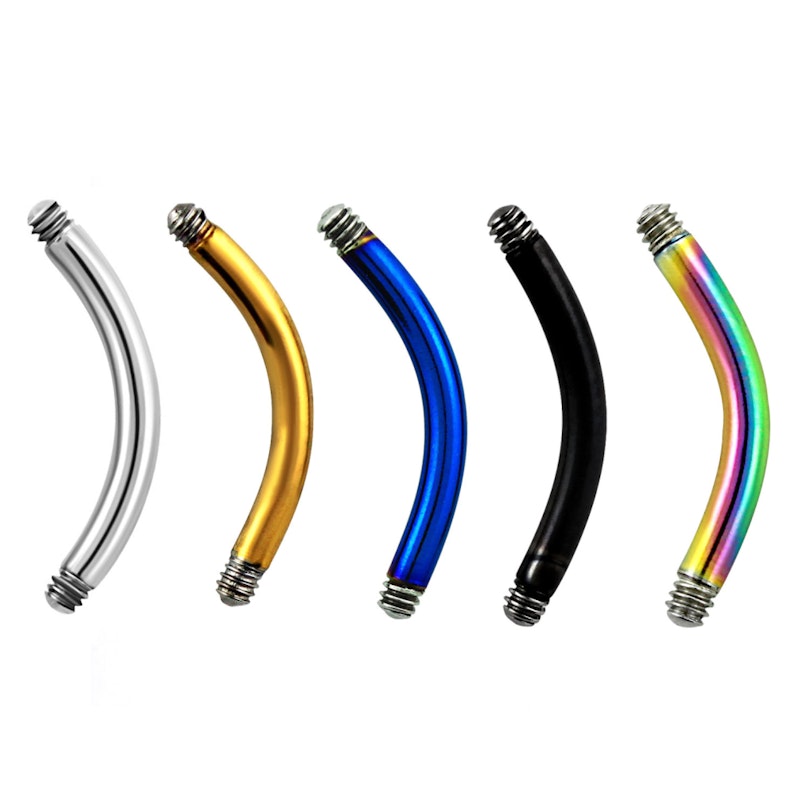Heb je een gebogen staafje voor je piercing nodig? Hier vind je losse staafjes uit chirurgisch staal zonder piercingballetjes tegen een werkelijk voordelige prijs.