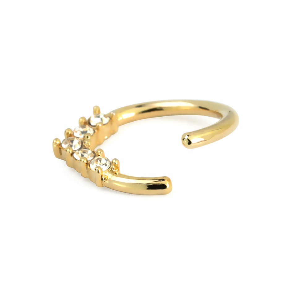 Dit is een fantastische gesloten ring. Het sieraad is klassiek en rond, maar eindigt met een kleine bezaaide V-vorm aan de onderkant. Als je van opvallende sieraden houdt, dan is deze voor jou!