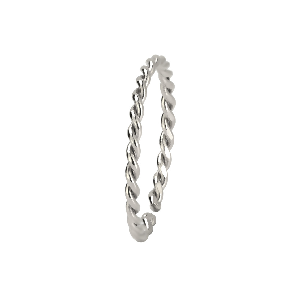 Dit is een andere versie van onze populaire eenvoudige gesloten ring. De normale gesloten ring bestaat uit ƩƩn stuk metaal, die een cirkelvormige ring vormt. Deze nieuwe versie bestaat uit twee stukken gedraaid metaal, waardoor een gevlochten effect ontstaat. De uiteinden van de ring zijn glad afgerond, zodat je de ring makkelijk in- en uit kan doen.