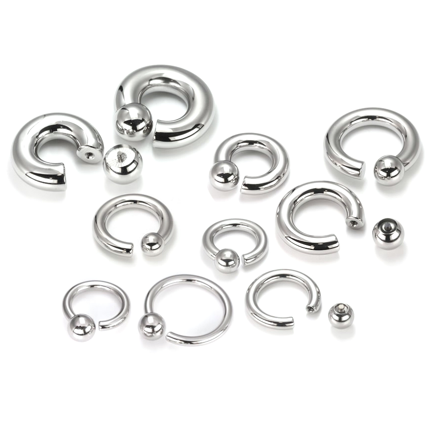 De nieuwste ontwikkeling onder de grote piercingssieraden zijn de grote ballclosure ringen. Deze hier hebben een gebruiksvriendelijke bal, die gemakkelijk op en afgeschroefd kan worden, in plaats van dat het tussen de uiteinden van de ring geklemd hoeft te worden. Vooral bij grote ballclosure ringen kan dit lastig zijn. De balletjes zitten hier met een klein staafje in het schroefdraad in de ring vast. Je hoeft hiermee dus ook geen geld in een ringopener te investeren, wat normaal gesproken echt een must have is wanneer je grote piercingssieraden gebruikt.
