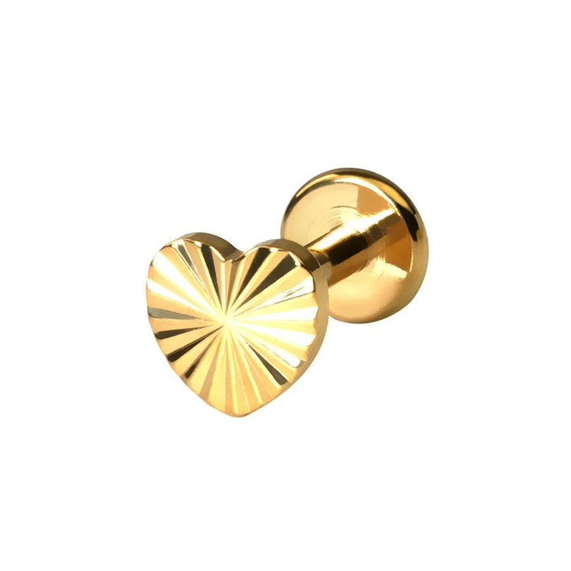 Deze charmante hartvormige labret heeft een bovenkant met een prachtige textuur, ontworpen met subtiele strepen die vanuit het centrum vloeien, waardoor ze prachtig schijnen in het licht.
