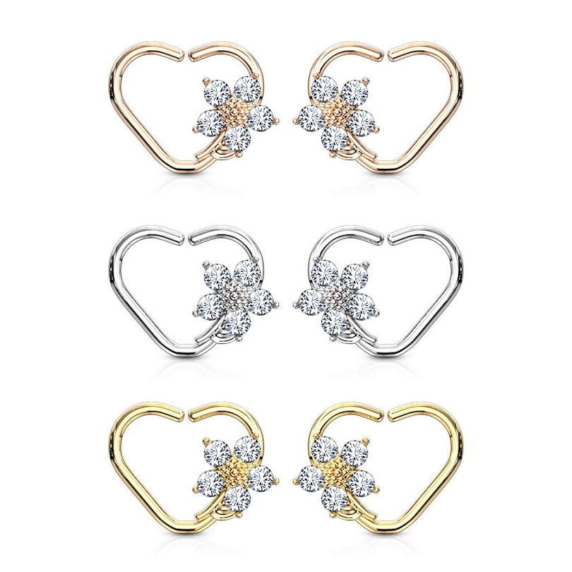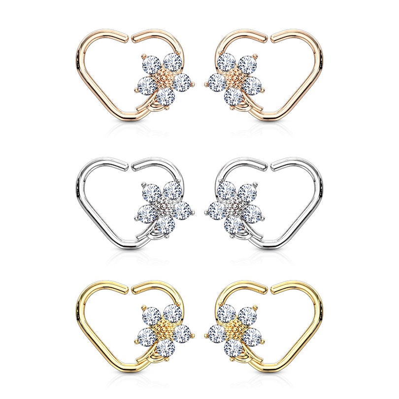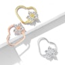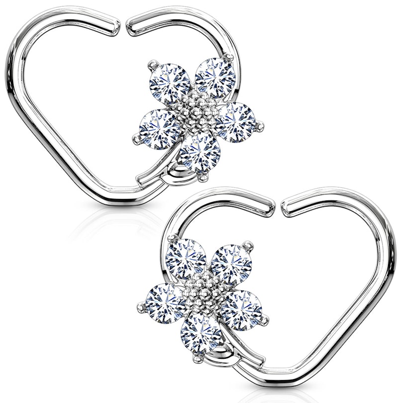 Naam: Hartvormige oorpiercing met een bloem van steentjes