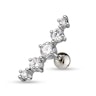 Deze bijzonder stijlvolle oorpiercing bestaat uit zuiver chirurgisch staal en is met vijf kleine, diamantvormige steentjes versierd.