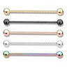 Dit sieraad is verkrijgbaar in verschillende kleuren. Dit is een coating die beter vasthoudt dan gewone coatings. Zowel de ballen als het staafje zijn in de kleur die je kiest. De ballen zijn 5 mm in diameter en het staafje zelf is 1.6 mm dik en 38 mm lang.