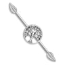 Dit je kans om een industrialstaaf versierd met een levensboommotief aan te schaffen, die bovendien extra versierd is met een blad aan elk uiteinde. Beide blaadjes zijn ineens ook het sluitingsmechanisme van het sieraad. Je doet het sieraad aan door het door alletwee de gaatjes van je industrialpiercing te steken en nadien de blaadjes op het staafje te schroeven. Het zal er perfect uitzien in je oor.