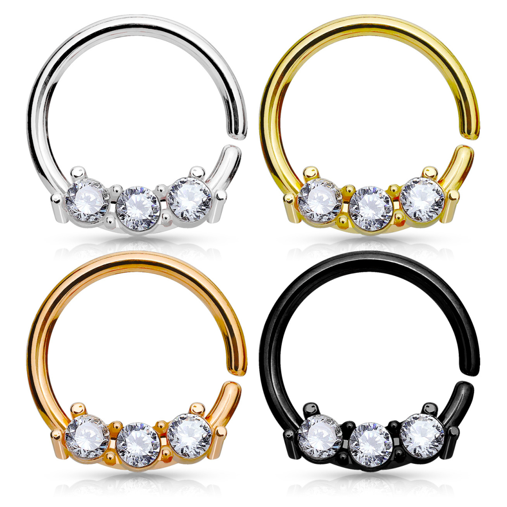 Sieraden voor een septum zijn vaak groot en opzichtig, waaronder bijvoorbeeld ball closure ringen of segmentringen. Zodra een steen wordt toegevoegd, werkt het groot en volumineus. Dat is echter niet het geval met deze septumpiercing, met een klein design en piepkleine steentjes.