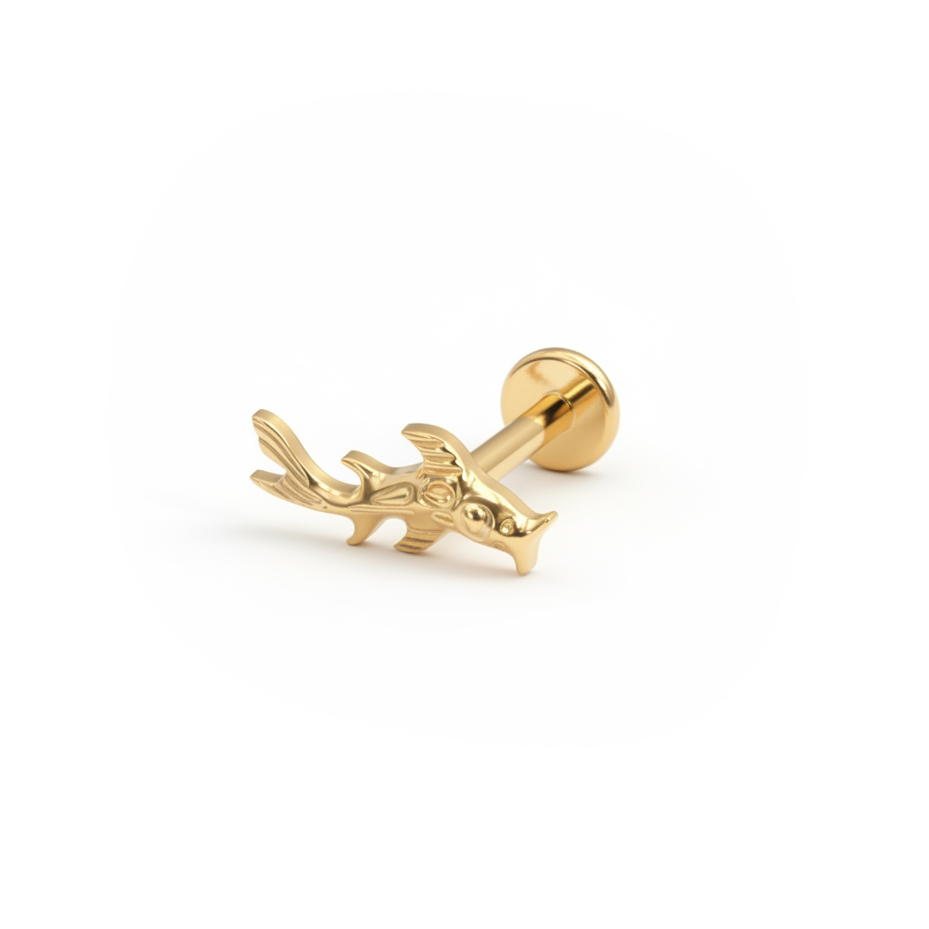 Deze koi vis labret van titanium is meer dan alleen een ontwerp; het heeft betekenis. GeĆÆnspireerd door koi, symbolen van kracht en transformatie, deze labret beweegt met je mee door momenten van verandering. Beschikbaar in gouden en zilveren afwerkingen, draagt het intentie met zich mee.