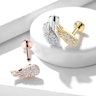 Deze labret met interne schroefdraad heeft een engelenvleugel design met heel veel steentjes en prachtige details. Het sieraad is beschikbaar in drie kleuren: goud, zilver en rosƩ goud. De gouden variant is verguld in 14k goud en de zilveren is gerhodineerd. De labret heeft een standaard draaddikte van 1.2 mm en is beschikbaar in twee lengtes: 6 mm en 8 mm. Perfect dus voor je oor- en lippiercings.