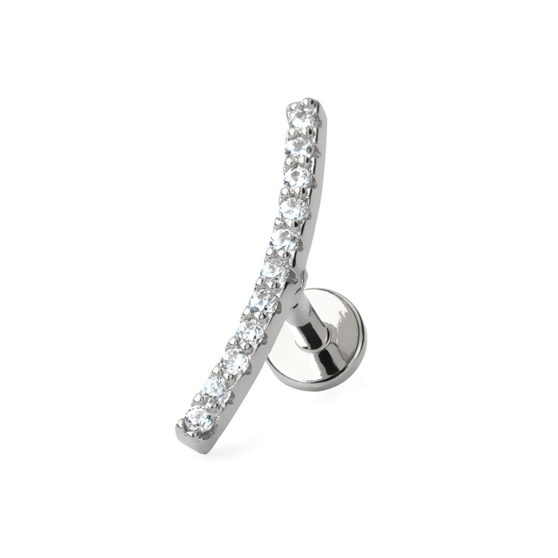 Dit labret valt zeker op door de gebogen staaf met prachtige ingelegde steentjes!