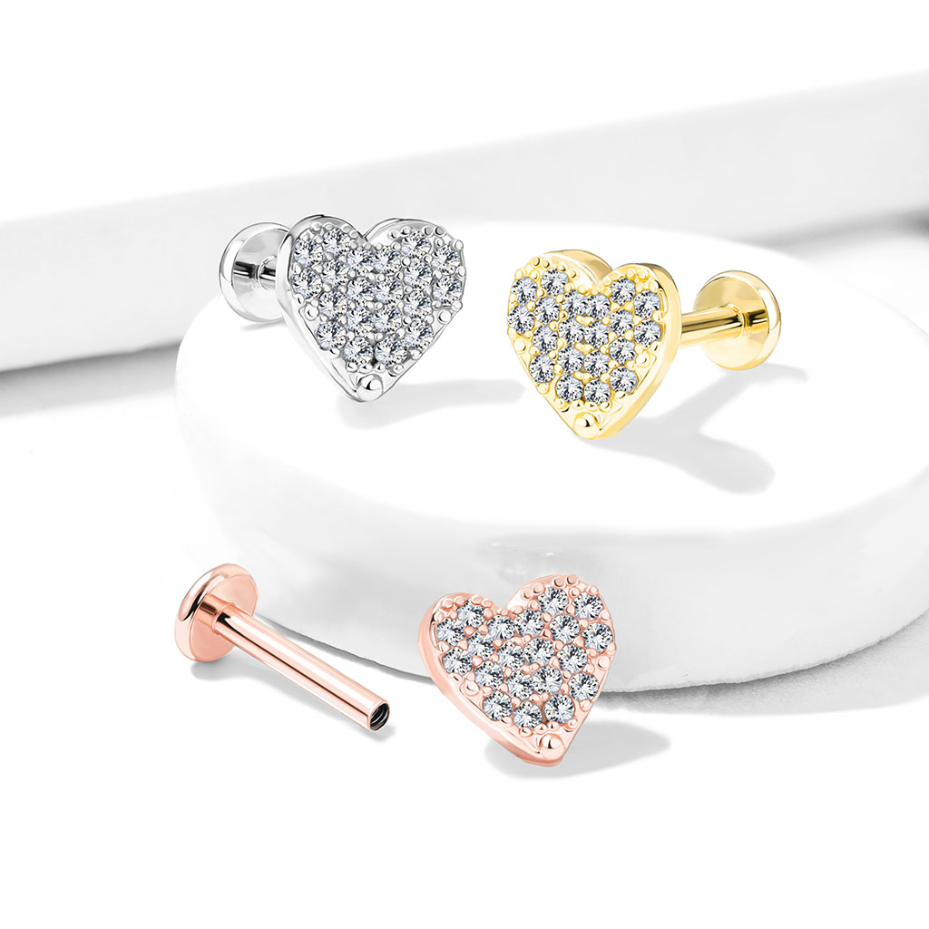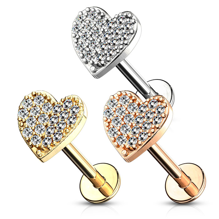 Hartjes op piercings zijn ongelooflijk populair. Deze lieve labret waar je op hebt geklikt heeft ook een hartje, maar met een twist: het hartje is bezet met kleine steentjes waardoor het glinstert en fonkelt.