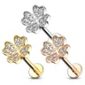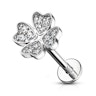 Het sieraad heeft een interne schroefdraad, dus de achterkant van het ontwerp kan je het makkelijk en pijnloos in het staafje schroeven. De labret is gemaakt van chirurgisch staal dat gecoat is in dezelfde kleur als het klavertjevier. Daardoor heb je de mogelijkheid om uit meerdere kleuren te kiezen. Je kan ook uit verschillende lengtes de maat kiezen die het beste bij je piercing past.