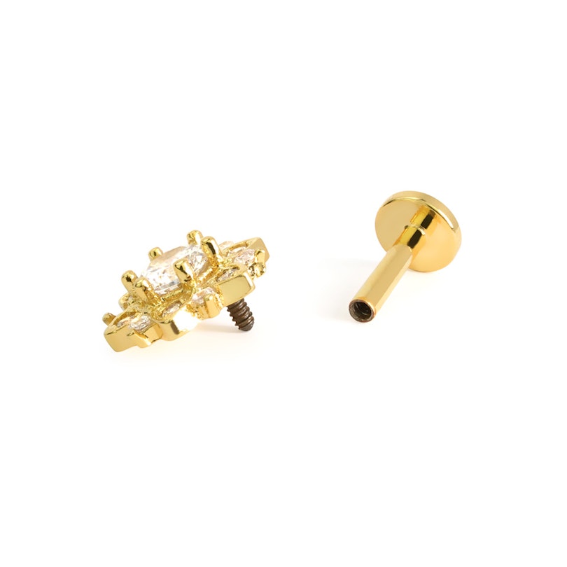 Labret met steenbezette lotusbloem en inwendig schroefdraad