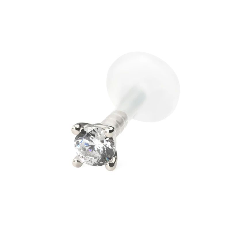 Labret uit 14 karaats goud met steentje-14k witgoud / PTFE