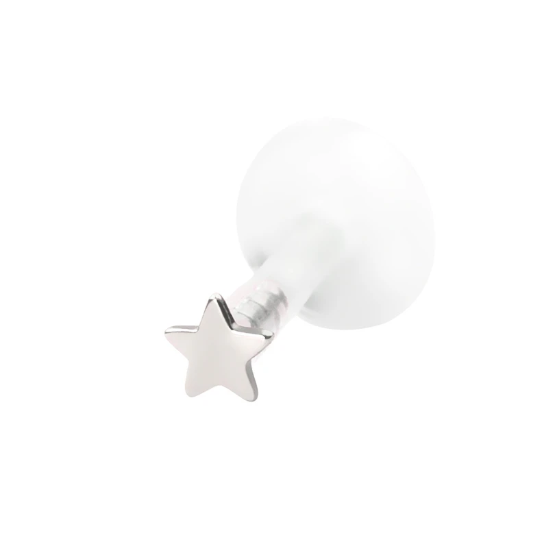 Dit juweel is met een 14 karaats gouden sterretje versierd. Je kunt hierbij kiezen uit een traditioneel 14 karaats geelgouden versie of een 14 karaats witgouden variant. Het sterretje bevindt zich bovenop een labret uit PTFE en dient als sluiting door het in het staafje te duwen.