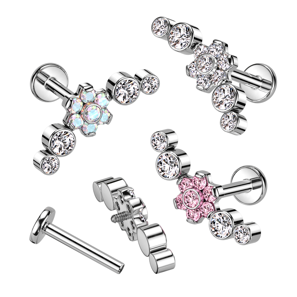 Naam: Labret uit titanium versierd met prachtig bloemmotief