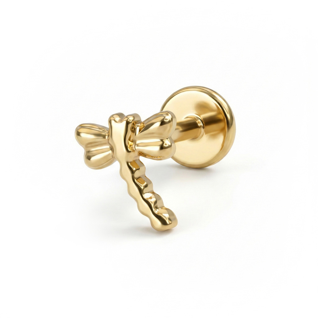 Deze schattige labret heeft een libellen ontwerp. Het sieraad is gemaakt van titanium, waardoor het comfortabel is om te dragen, zelfs voor gevoelige huid. De maat (de libel is 5.8 mm) betekent dat dit sieraad goed is voor verschillende oor piercings. De labret heeft een push-in mechanisme, waardoor het super makkelijk is om vast te zetten in je piercings.