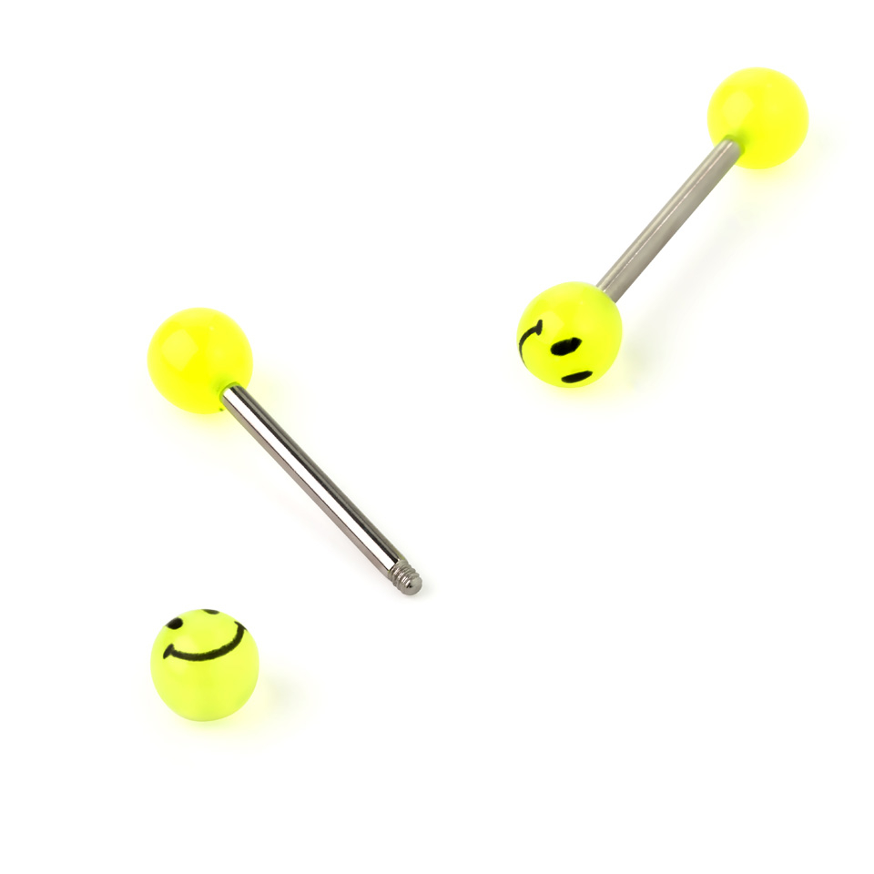 Deze tongpiercing is schattig en grappig. Hij geeft licht in het donker en heeft een smiley op de bovenkant.