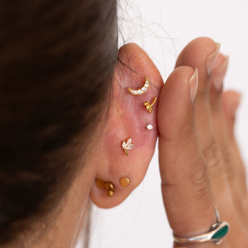 Plaatsing: Tragus, Oorlel, Helix, Conch, Anti-tragus, Forward helix