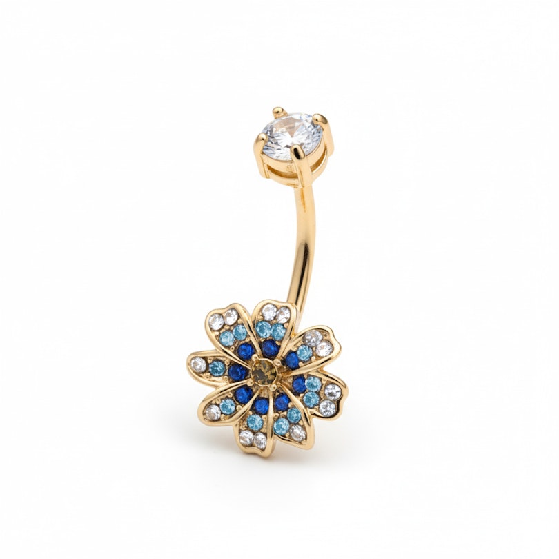 Navel barbell met blauwe bloem