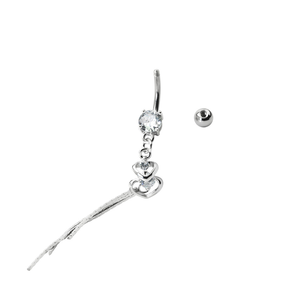 Naam: Navelpiercing met dubbele harthanger en steentjes