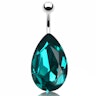 Het sieraad hier is voortreffelijk mooi als een droom van 1001 nachten en de turquoise groene steen schittert prachtig in het licht zoals de oceaan aan exotische kusten dat doet. Als je op zoek bent naar een prachtige, sensuele en exotische navelpiercing, dan is deze navelpiercing met grote druppelvormige steen de perfecte keuze.