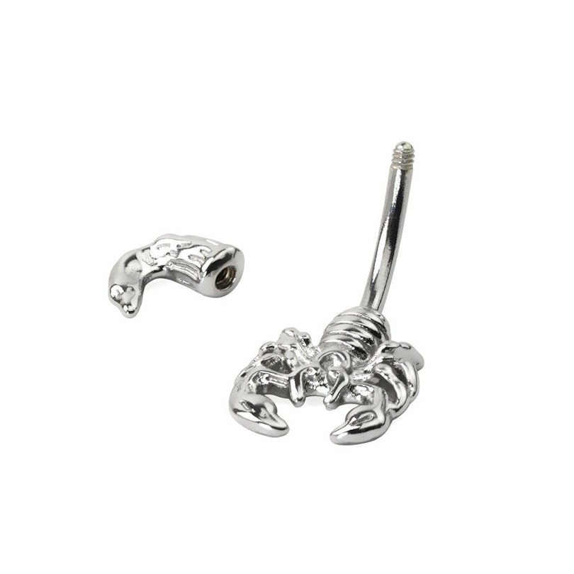 In plaats van een top bal heb je de staart van de schorpioen als bovenste deel. De staart is geheel natuurgetrouw, en krult op met de giftige angel aan het uiteinde. Als het sieraad dan in je navelpiercing zit, zal het volledige figuur van de schorpioen zichtbaar zijn op je buik.