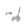 Dit is een navelpiercing zonder hanger of andere losse delen, en leent zich daardoor erg goed voor alledaags gebruik. De mooie schorpioen is onwijs gedetailleerd uitgevoerd en bestaat uit twee delen die samen dit krachtige kleine dier vormen. In plaats van een traditionele onder bal heb je het gehele voorste deel van het lichaam van het dier, benen, scharen en hoofd inbegrepen. Het ontwerp is zoals gezegd onwijs gedetailleerd en er zitten ribbels op de rug van de schorpioen.