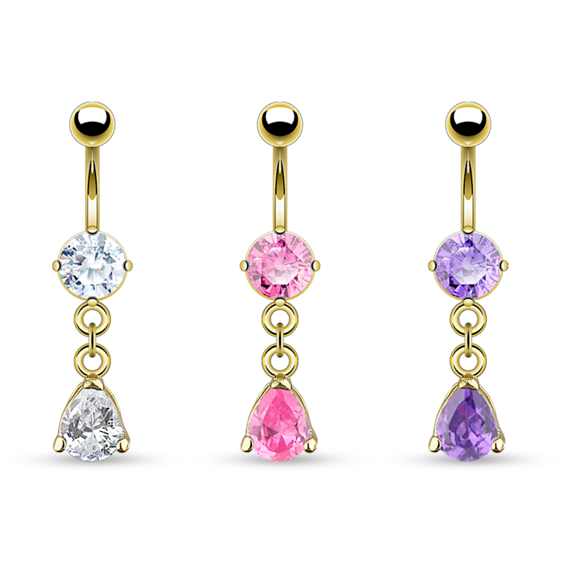 Naam: Navelpiercing met een steen en een druppelvormige hanger