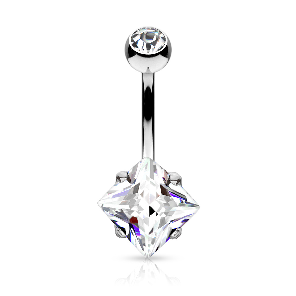 Als je graag navelpiercings die goed opvallen draagt, dan is deze hier misschien wel iets voor jou. Het sieraad is ongetwijfeld eenvoudig in design, maar valt juist weer heel erg op door zijn mooie, grote vierkante steen als onderbal.