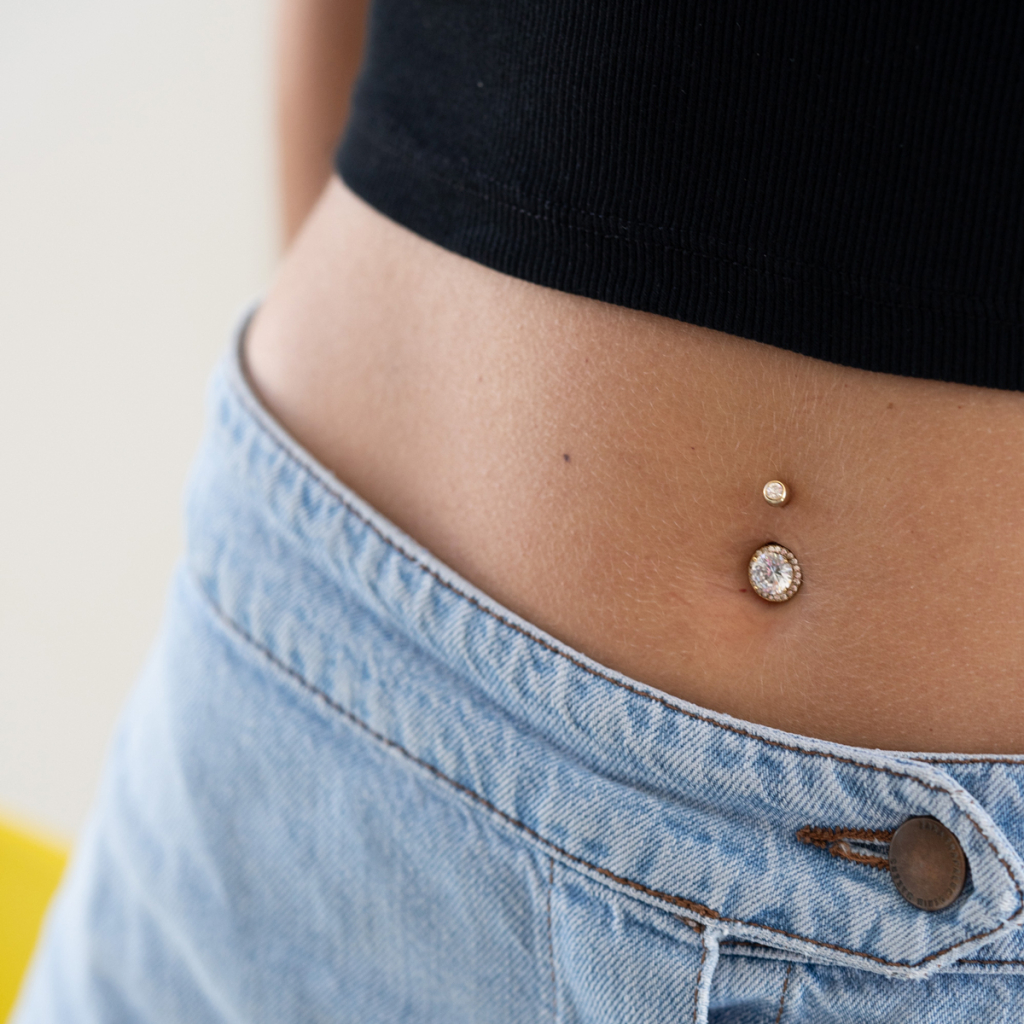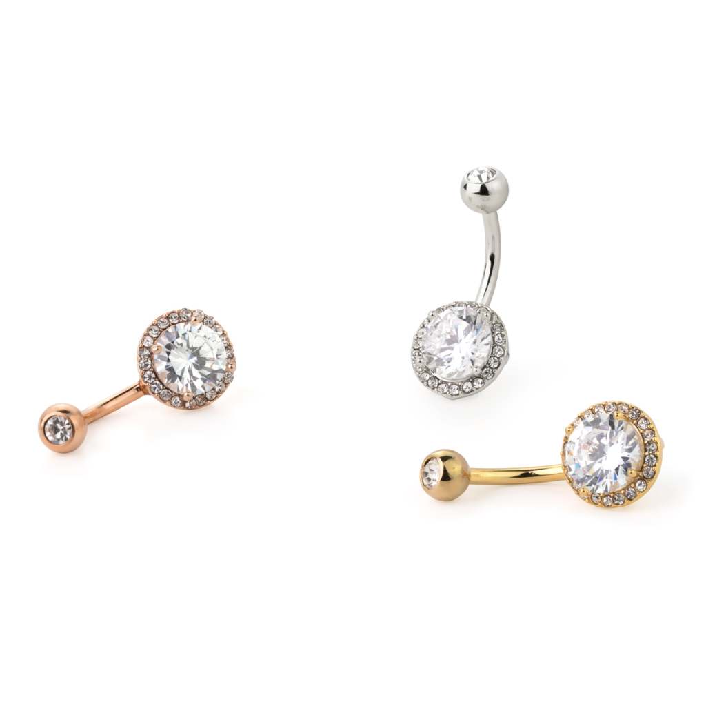 Naam: Navelpiercing met facetgeslepen centrumsteen