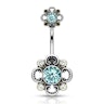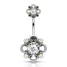 Navelpiercing met filigranen bloem met gestanste bloemblaadjes en steentjes